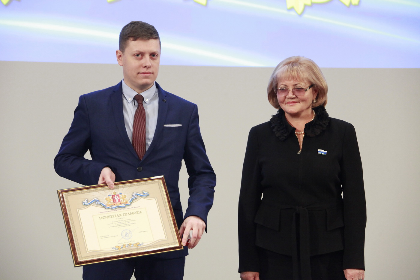 Спикер областного парламента вручила награды Законодательного Собрания Свердловской области – почетные грамоты. За большую работу по защите прав граждан депутатами отмечены консультанты аппарата уполномоченного по правам человека Евгений Батухтин и Наталья Уланова, а также советник уполномоченного по правам человека Михаил Жернаков.