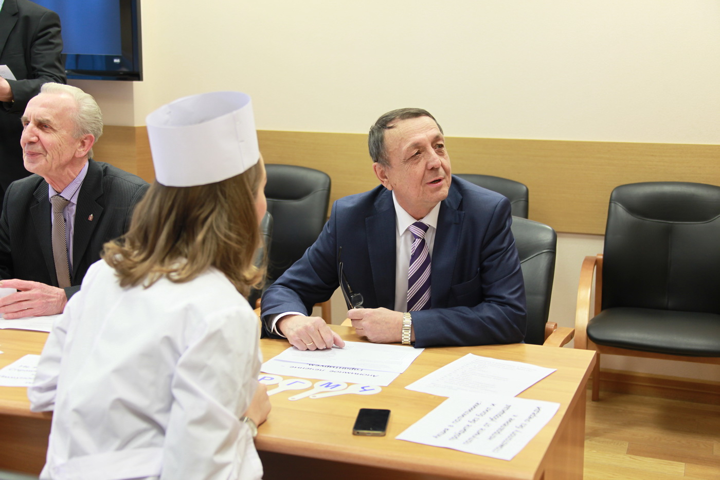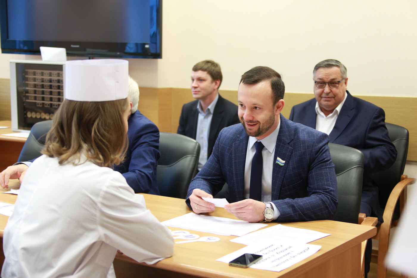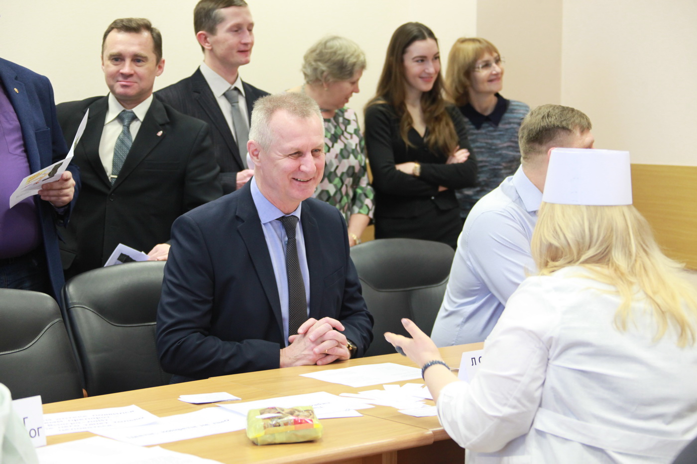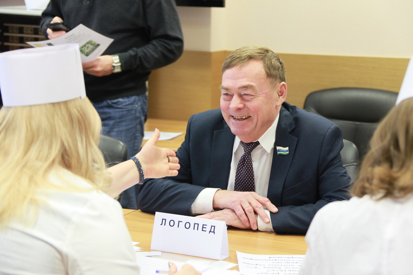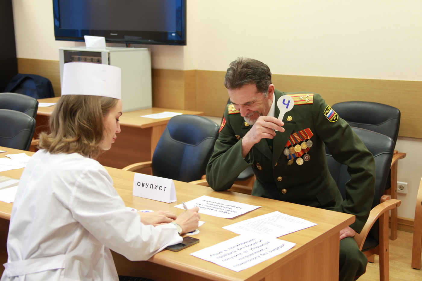 Профсоюзный комитет во главе с Еленой Шириной подготовил для участников торжественного собрания праздничную программу, которая включала работу временного «призывного пункта», где мужчины-депутаты и государственные служащие прошли «медкомиссию». Вердикт о годности к службе Родине подписывала депутат Елена Трескова, на время возглавившая «полевой госпиталь».