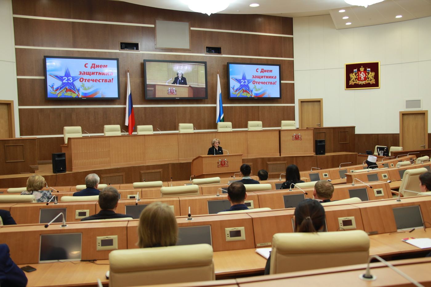 Председатель Законодательного Собрания Людмила Бабушкина поздравила депутатов и сотрудников аппарата с 23 февраля – Днем защитника Отечества – и высказала слова благодарности за добросовестный труд и «надежное плечо».