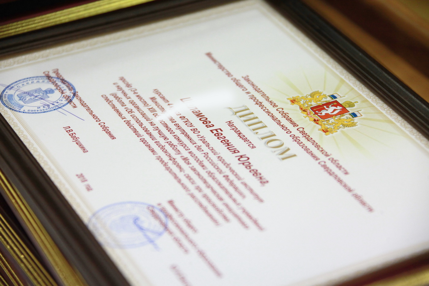 В Законодательном Собранием Свердловской области прошла торжественная церемония награждения лучших работ областного конкурса молодежи образовательных учреждений и научных организаций «Моя законотворческая инициатива».