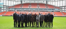 В первую очередь депутаты посетили «Екатеринбург Арену» – место проведения матчей главного спортивного события года. Парламентарии осмотрели футбольное поле с натуральным травяным покрытием, зал для пресс-конференций, раздевалки и разминочные зоны, скай-боксы и помещения для расположения VIP-гостей. Особое внимание парламентарии обратили на наличие специальных лифтов для перемещения инвалидов-колясочников. Общее количество мест Екатеринбург - Арены – 35 тысяч. В феврале этого года комиссия ФИФА приняла стадион в эксплуатацию. 15 апреля состоится торжественное открытие объекта, будет проведен футбольный матч между командами «Спартак» - «Урал» и одновременно пройдет тестирование и отработка проведения масштабных спортивных мероприятий.