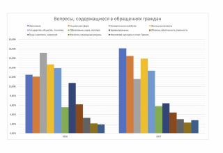 Спикер парламента отметила, что идет рост обращений в социальной сфере: с 12% в 2016 году до 16,5 в 2017-м и уже 17% в первом квартале текущего года.