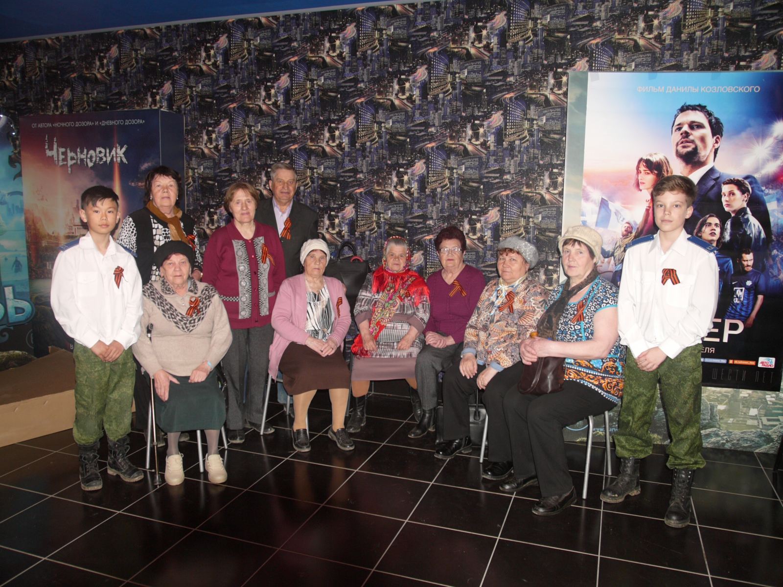 Самое активное участие в проведении мероприятия приняли бойцы городской организации «Юнармия». Юнармейцы встречали ветеранов у входа кинотеатр и провожали до кинозала, помогали пожилым людям занять свои места