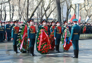 Губернатор Свердловской области Евгений Куйвашев, командующий войсками Центрального военного округа Александр Лапин, депутаты Законодательного Собрания, члены областного правительства, представители администрации Екатеринбурга, ветераны и военнослужащие у памятника легендарному маршалу Победы возле здания штаба Центрального военного округа отдали дань памяти выдающемуся человеку, судьба которого была тесно связана и с Уралом. Георгий Жуков командовал войсками Уральского военного округа с 1948 по 1953 год.