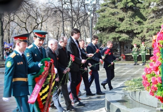 Депутаты Законодательного Собрания в канун Дня Победы приняли участие в традиционной церемонии возложения цветов к памятнику великому полководцу Георгию Константиновичу Жукову.