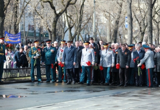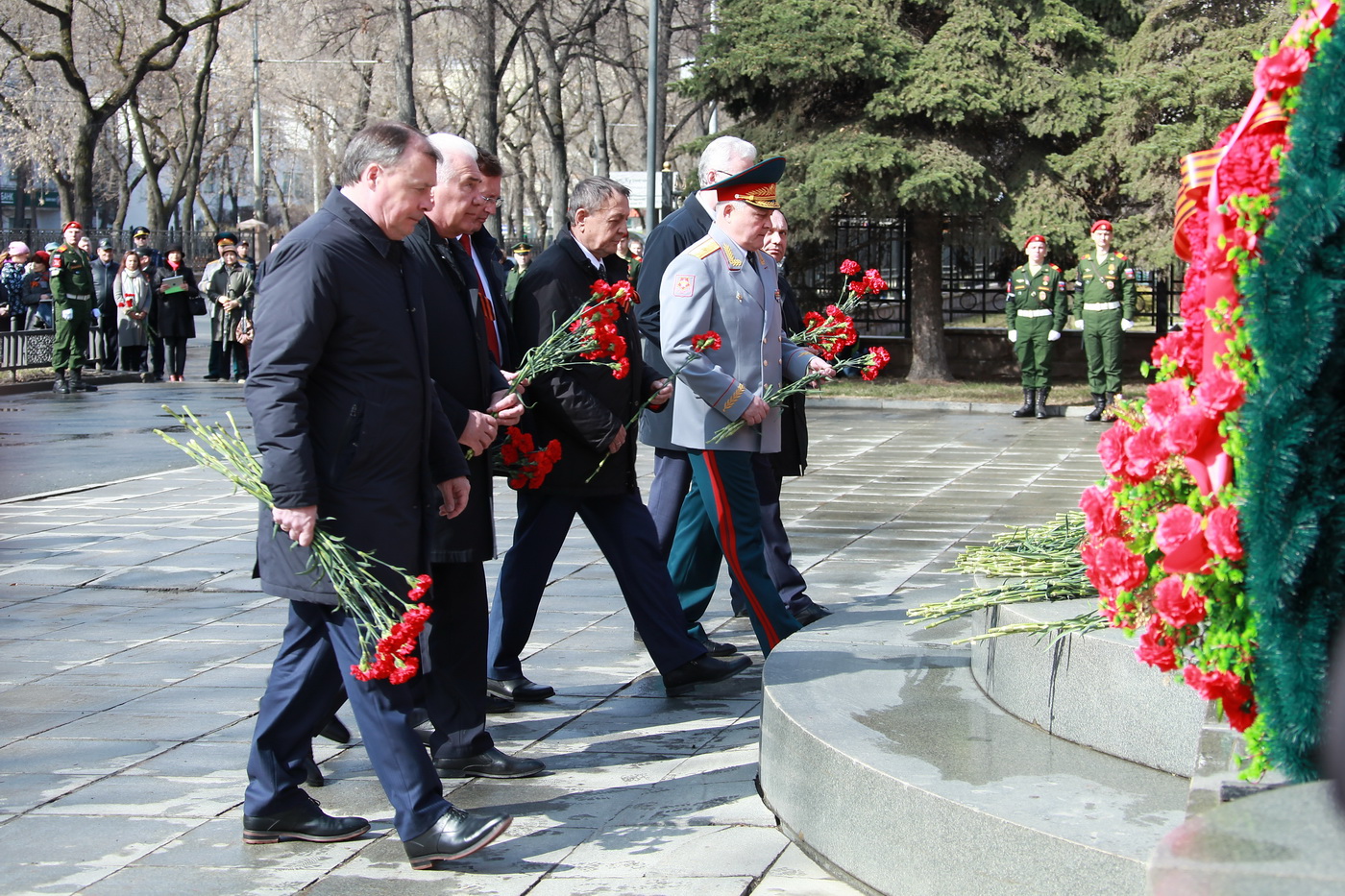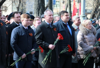 Участники церемонии возложили цветы к подножию памятника Георгию Жукову, почтив память павших участников Великой Отечественной войны и тружеников тыла.