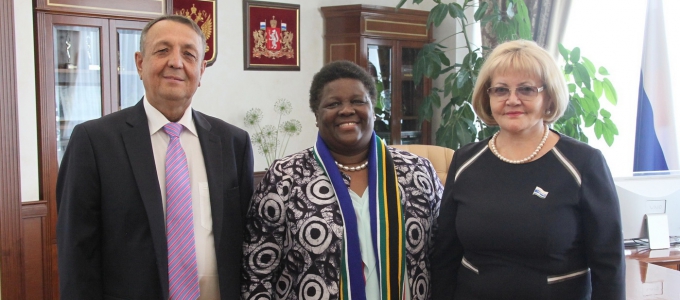 Председатель Законодательного Собрания Свердловской области Людмила Бабушкина встретилась с Чрезвычайным и Полномочным послом Южно-Африканской Республики в России Номасонто Марией Сибанда-Туси. В обсуждении вопросов развития сотрудничества также принял участие заместитель председателя Анатолий Сухов.