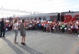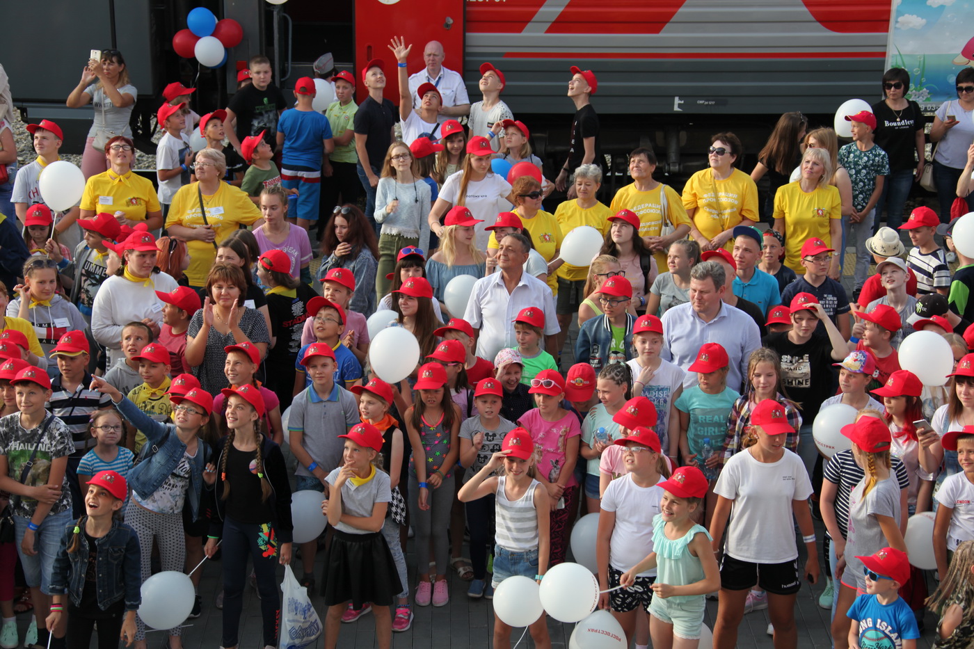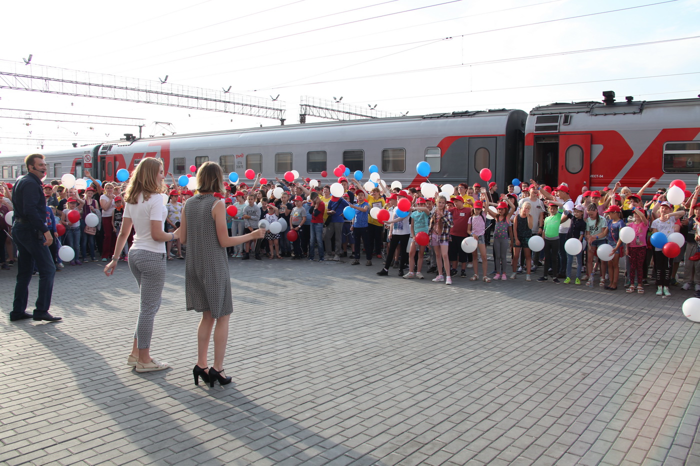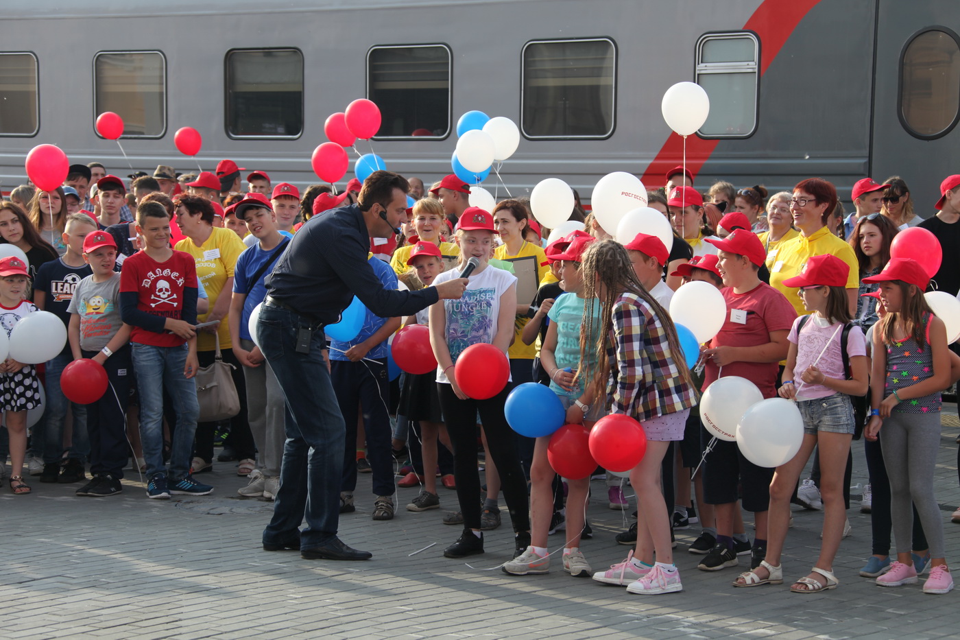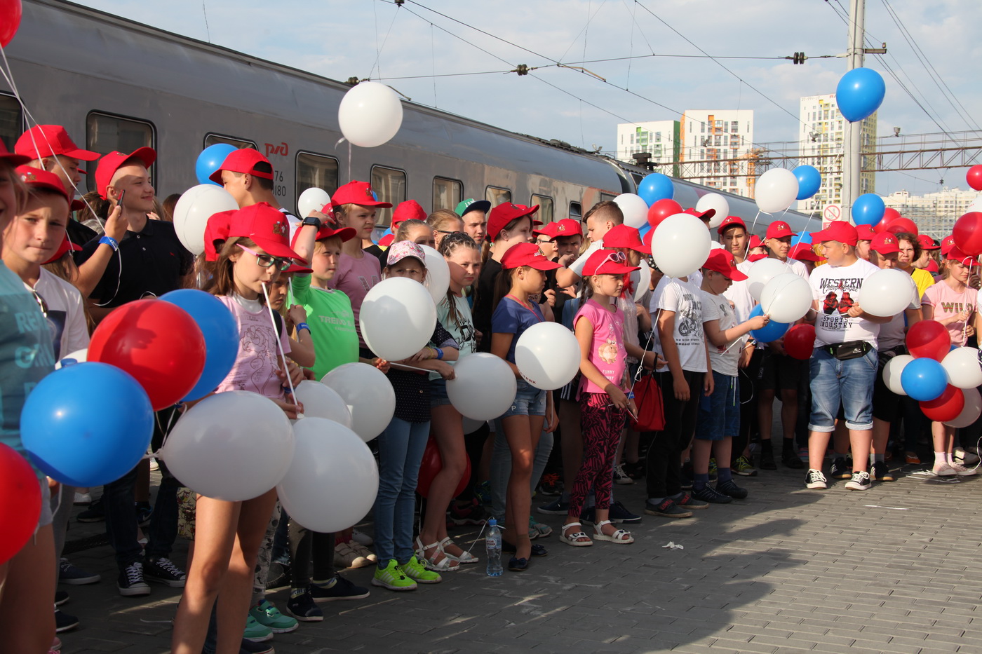 На первой платформе железнодорожного вокзала «Екатеринбург-Пассажирский» состоялось торжественное мероприятие, посвященное отправке состава. Поприветствовать ребят и пожелать им хорошей дороги пришли заместители председателя Законодательного Собрания Свердловской области Анатолий Сухов,  заместитель министра общего и профессионального образования Ирина Серкова, представители федерации профсоюзов Свердловской области.
