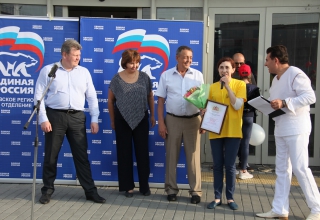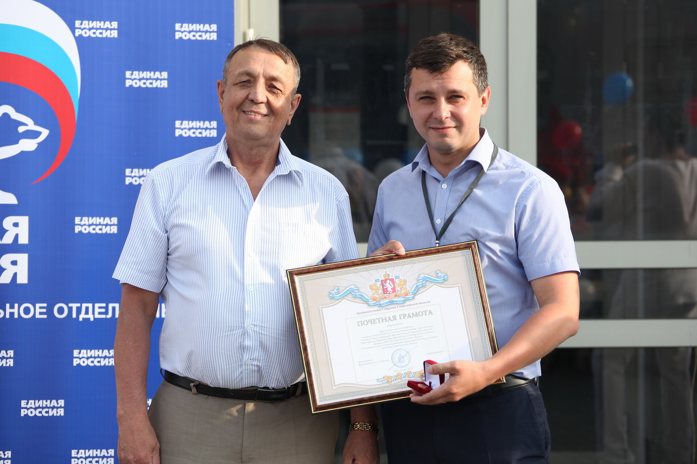 Анатолий Сухов на торжественном митинге, посвященном отправке поезда, вручил Почетную грамоту Законодательного Собрания Свердловской области начальнику железнодорожного вокзала «Екатеринбург» Алексею Тарасову. Благодарственным письмом Законодательного Собрания отмечены заслуги в деле организации детского летнего отдыха заместителя начальника штаба «Поезда здоровья» Анны Дмитращук.