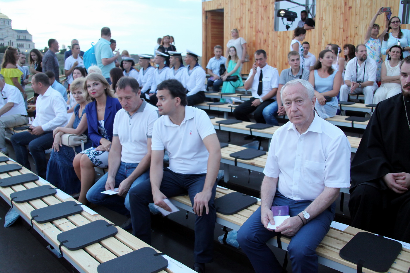 Накануне, вечером 28 июля, члены делегации парламента Свердловской области стали зрителями грандиозного представления, посвященного 1030-летию крещения Руси. По случаю празднования на берегу Карантинной бухты, на сцене под открытым небом Херсонеса Таврического состоялся концерт знаменитого хора Сретенского монастыря. На концерте также присутствовал председатель правительства России Дмитрий Медведев.