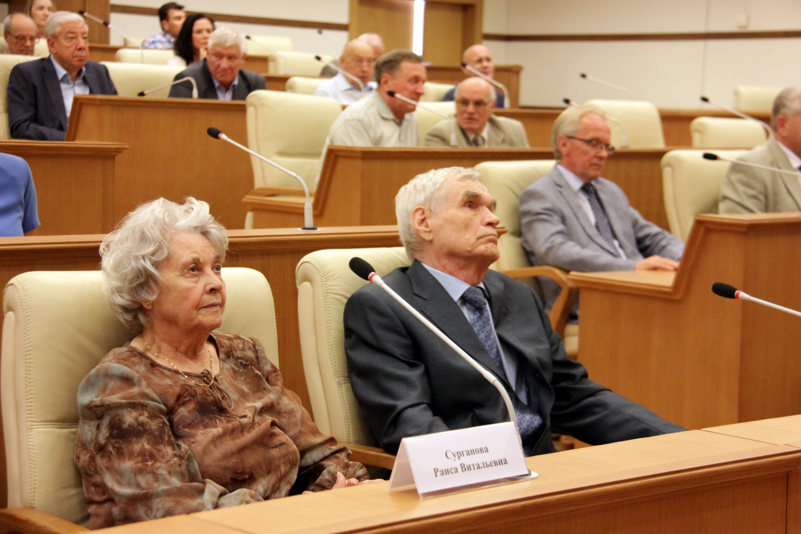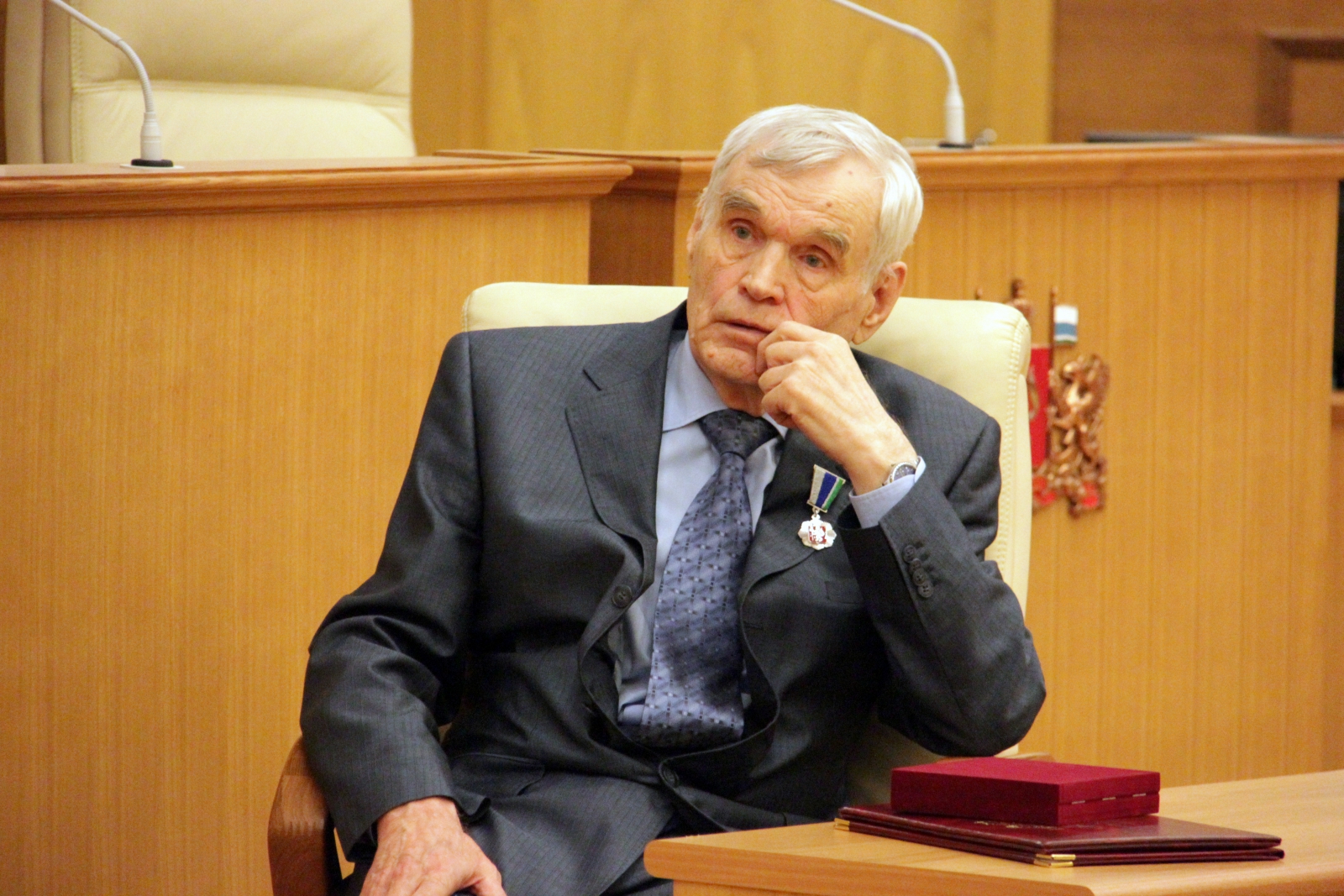 Председатель Законодательного Собрания Людмила Бабушкина от имени депутатов областного парламента и от себя лично поздравила Вячеслава Сурганова с 85-летним юбилеем.