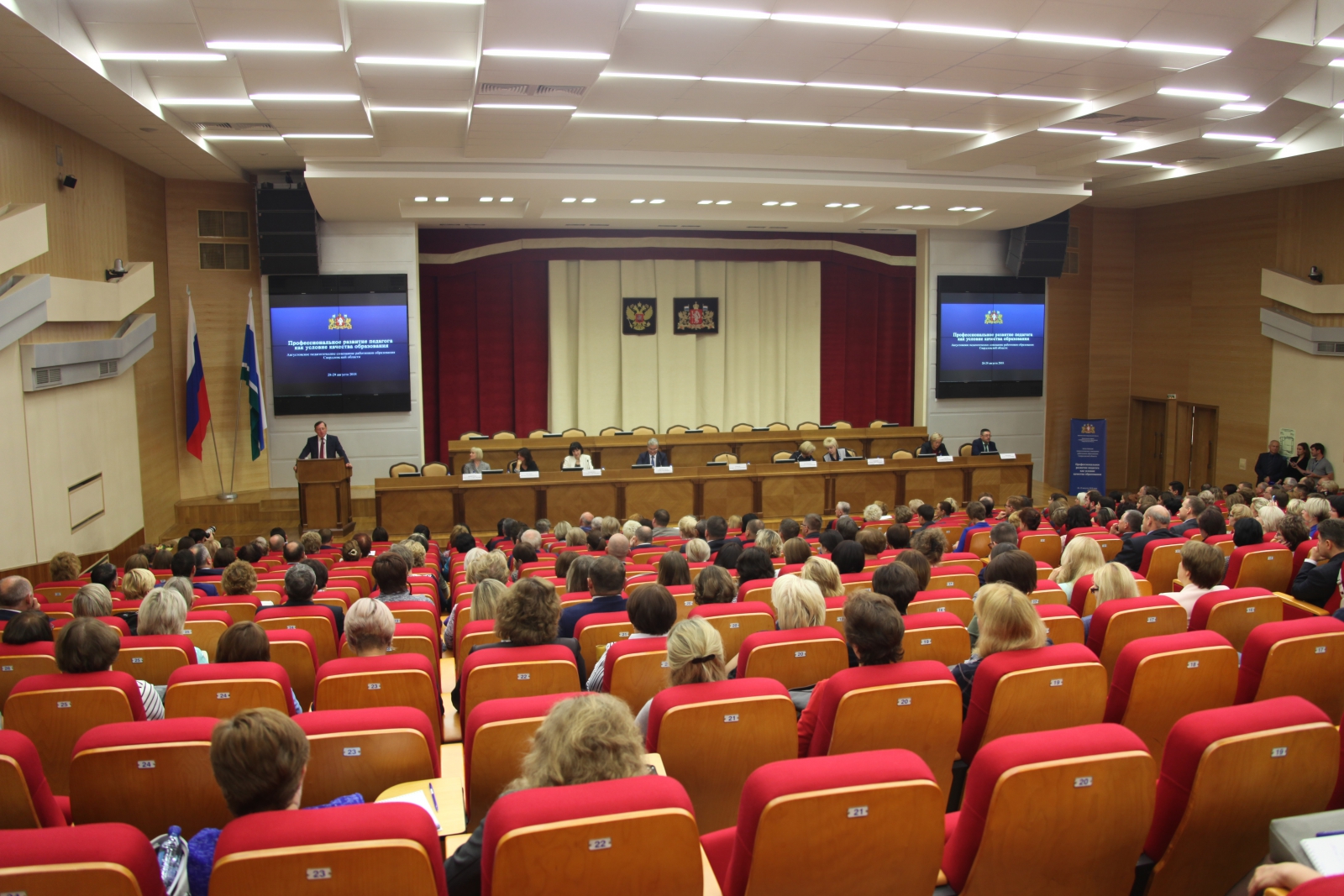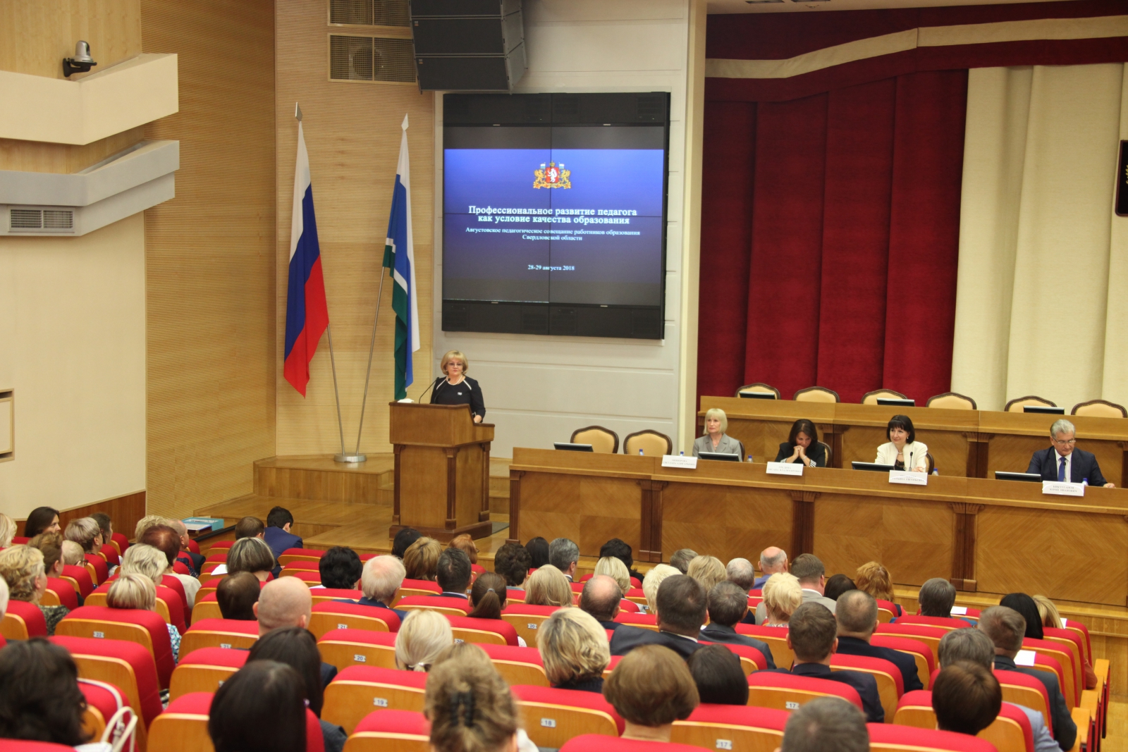 Заместитель губернатора Свердловской области Павел Креков приветствовал участников августовского педагогического совещания от имени главы губернатора Евгения Куйвашева и правительства региона. Он обратил внимание на важность перехода на односменный режим работы школ и, как следствие, строительство и модернизацию новых зданий, а также обратил внимание на успехи комплексной программы «Уральская инженерная школа».