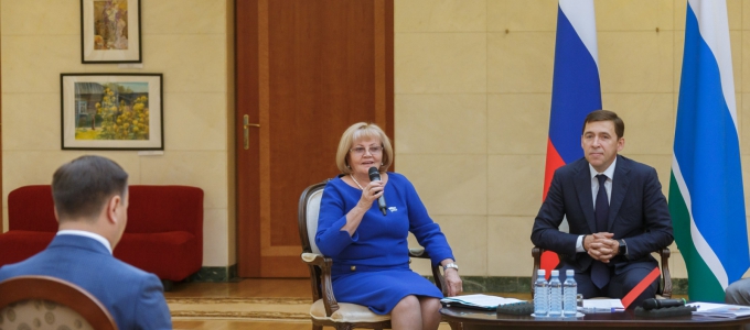 Во встрече губернатора Е.В.Куйвашева с вновь избранными депутатами представительных органов местного самоуправления Алапаевска, Артемовского, Кушвинского, Горноуральского, Волчанского, Качканарского, Белоярского, Малышевского городских округов, городского округа Верхняя Пышма, Ирбитского муниципального образования, Восточного, Галкинского и Обуховского сельских поселений приняла участие председатель Законодательного Собрания Свердловской области Людмила Бабушкина.