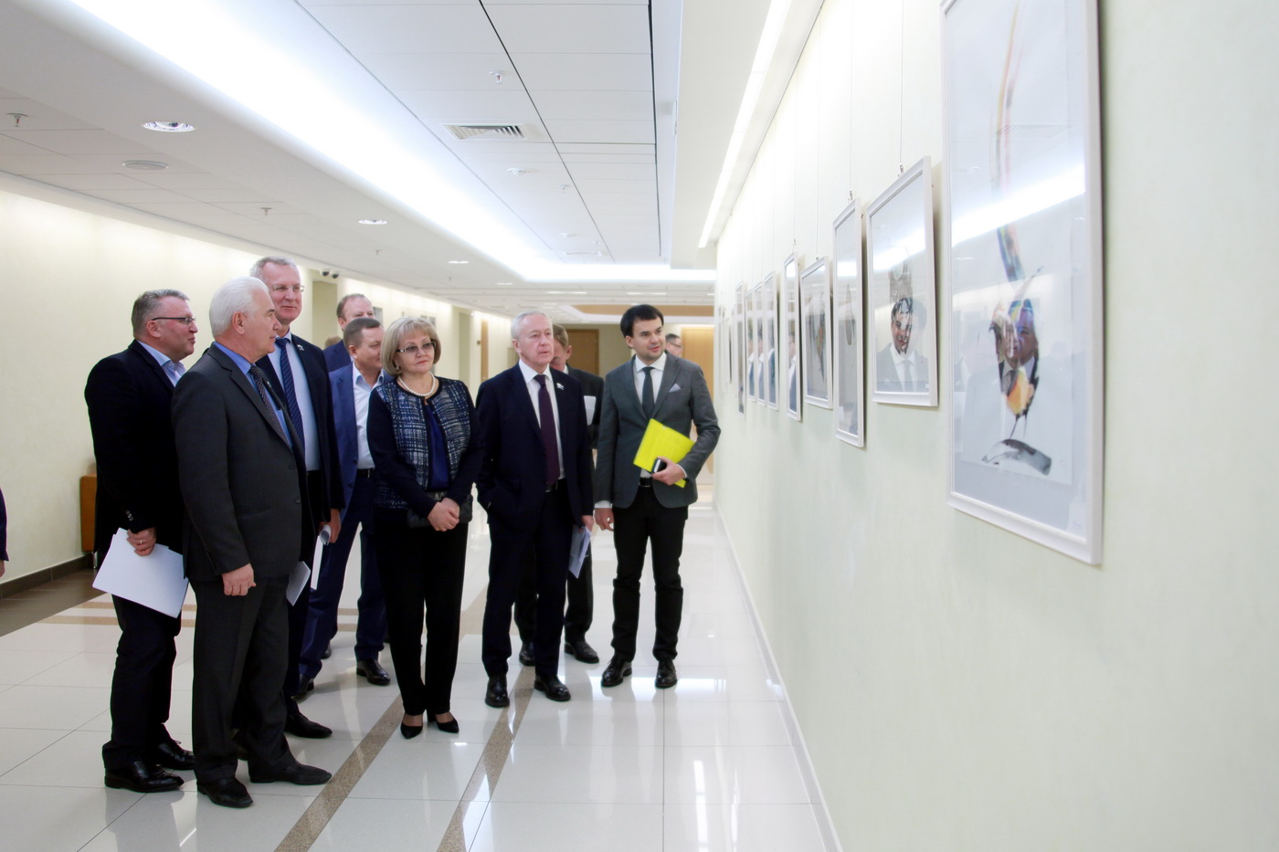 Председатель Законодательного Собрания Людмила Бабушкина, депутаты областного парламента познакомились с творчеством художницы Аноры Ашуровой, выставка которой развернулась в холле третьего этажа здания Законодательного Собрания.