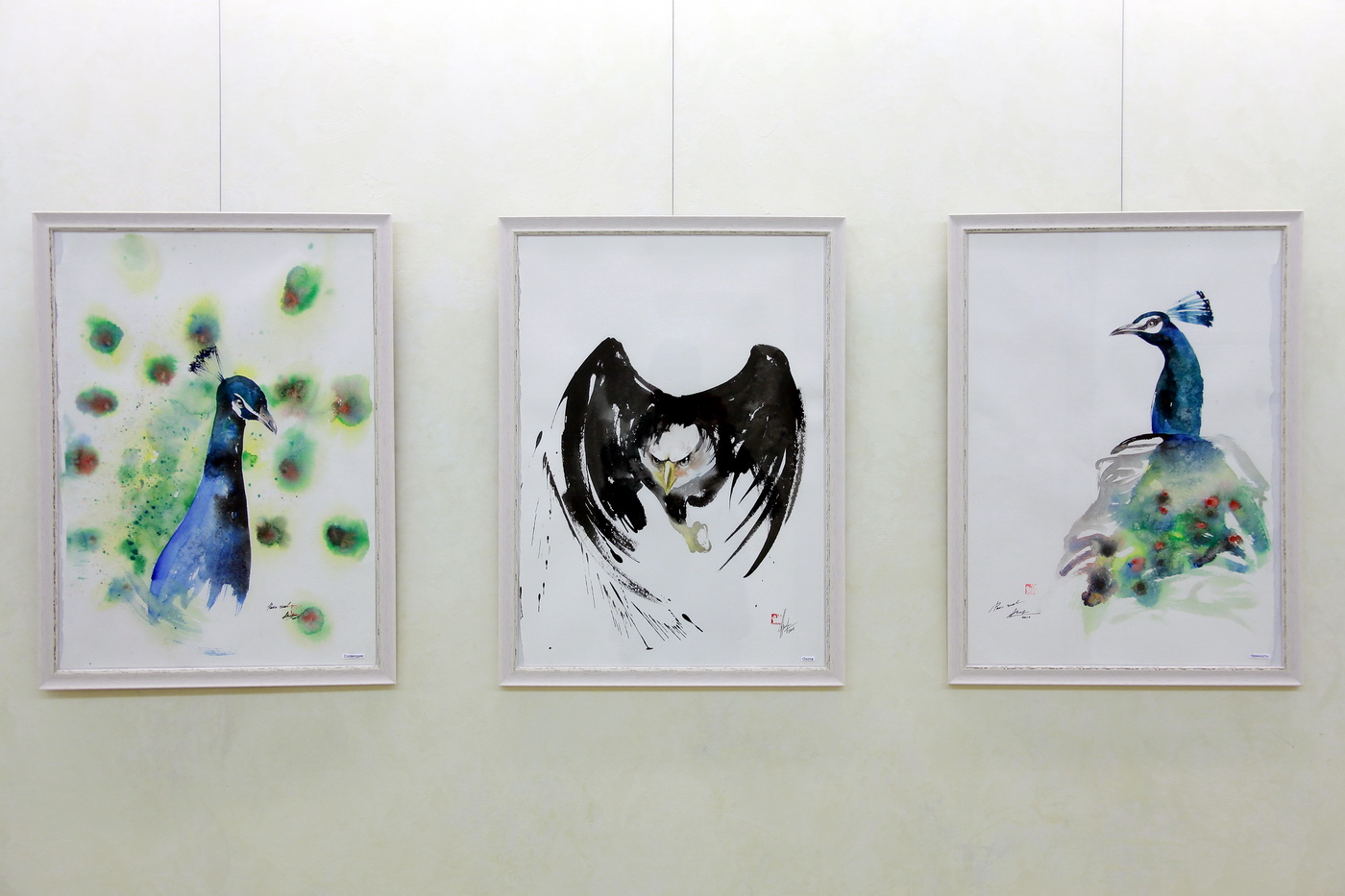 Работы выполнены акварелью и китайской тушью, каллиграфическими кистями из Японии. В результате смешивания техники запада и востока появился новый стиль – акварельная экспрессия с элементами реализма. Индийская бумага ручной работы подчеркивает индивидуальность каждой картины.