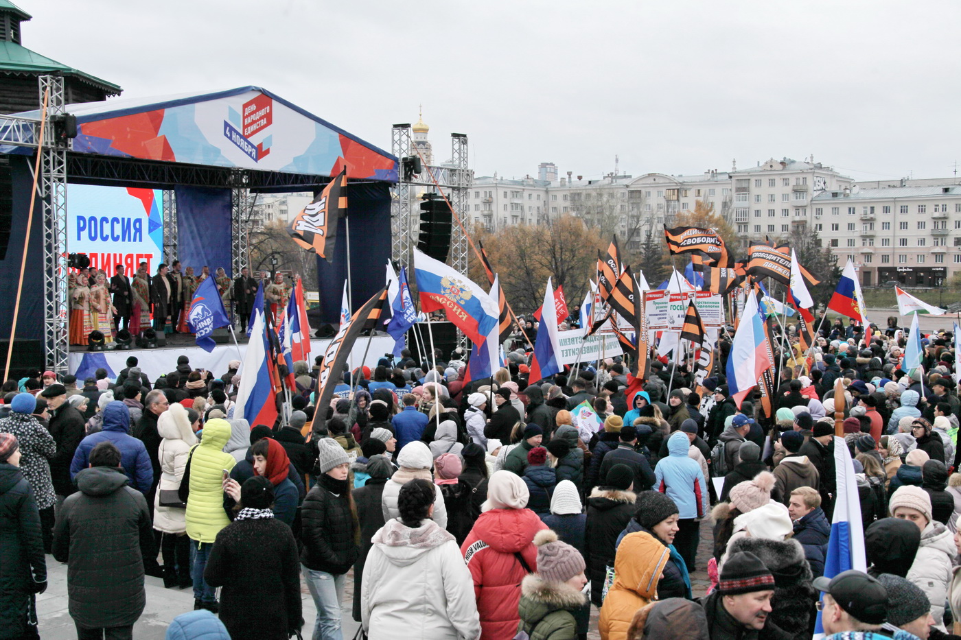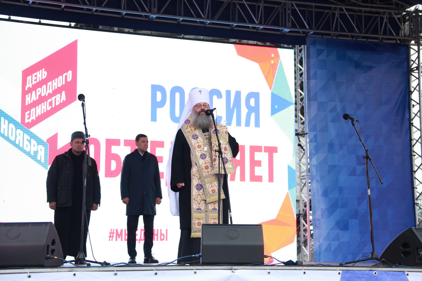 Несколько тысяч человек собрались в Екатеринбурге на площади у памятника Татищева и де Генину на торжественном митинге-концерте, посвященном Дню народного единства. В мероприятии приняли участие губернатор Свердловской области Евгений Куйвашев, председатель Законодательного Собрания Свердловской области Людмила Бабушкина, депутаты, а также представители основных религиозных конфессий и общественных организаций.