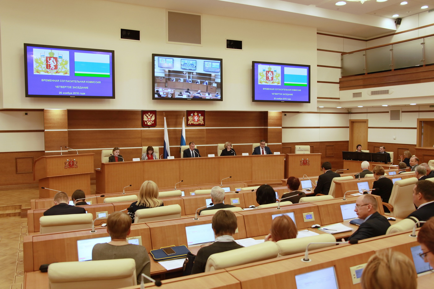 Завершающее заседание временной согласительной комиссии Законодательного Собрания по вопросам, связанным с рассмотрением проекта закона об областном бюджете на 2019 год и плановый период 2020 и 2021 годов состоялось под руководством председателя Законодательного Собрания Людмилы Бабушкиной и первого заместителя губернатора Свердловской области Алексея Орлова.