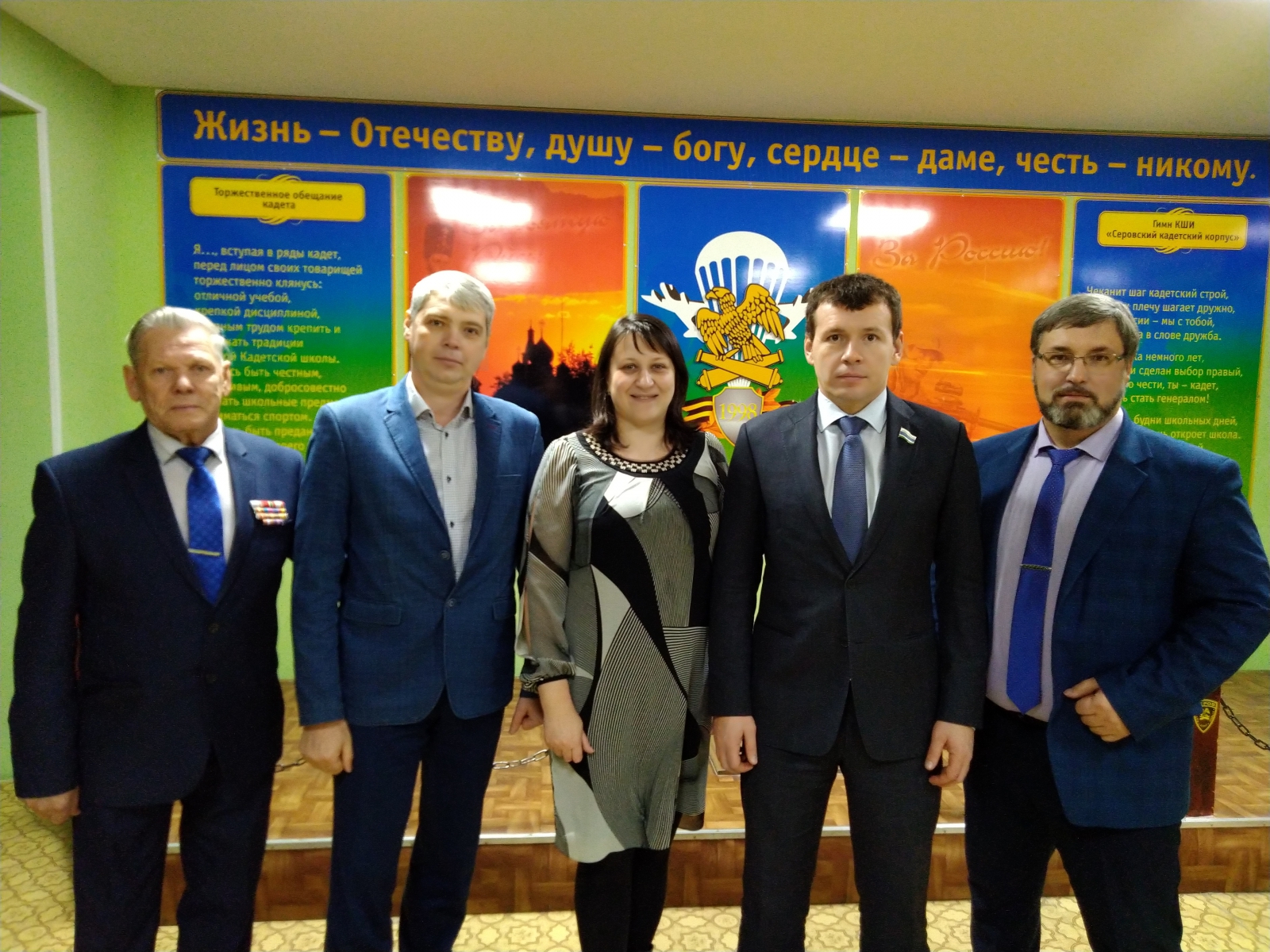 «Серовская Кадетская школа за 20 лет своего существования достигла существенных успехов и традиционно показывает высокий уровень военной и спортивной подготовки, полученных знаний и умений, дисциплинированность и считается одним из авторитетных учебных заведений с военным уклоном в Свердловской области. Быть кадетом - это одновременно большая честь и ответственность. У вашего кадетского корпуса есть девиз: «Честь, долг, польза Отечеству». Это не просто слова. Это должно стать вашей жизненной позицией. Среди вас есть дипломанты национальных молодежных патриотических конкурсов, всероссийских творческих фестивалей. Вы встречаетесь с представителями Росгвардии, несёте «Вахту памяти» 9 мая, участвуете в первенстве Свердловской области по армейскому рукопашному бою, встречаетесь с ветеранами, участвуете в большом сборе кадетских корпусов, проводите кадетский бал, играете в КВН и многое другое. Уверен, вы, приложив усилия, продолжите славные традиции российского кадетства» - поздравил кадетов и их наставников депутат Дмитрий Жуков.