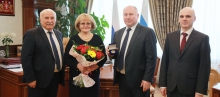 Заместитель губернатора Свердловской области – руководитель аппарата губернатора и правительства Свердловской области Валерий Чайников, заместитель председателя Избирательной комиссии Свердловской области Владимир Райков, секретарь Избирательной комиссии Свердловской области Игорь Буртов вручили председателю Законодательного Собрания Свердловской области Людмиле Бабушкиной памятную медаль к 25-летию избирательной системы Российской Федерации за активное содействие деятельности Избирательной комиссии Свердловской области.