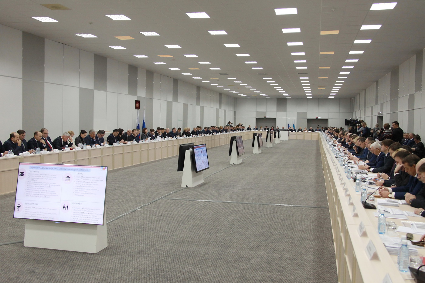 Одним из основных вопросов обсуждения стала реализация на территории муниципальных образований Свердловской области Указа Президента РФ № 204 и достижение показателей 12 национальных проектов.