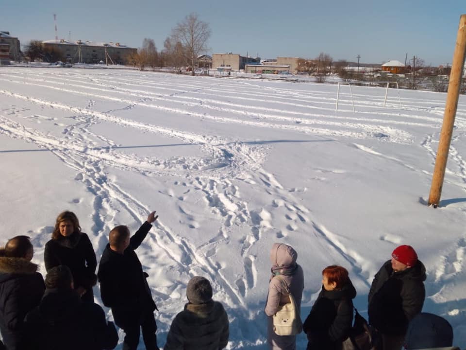 Бюджет области выделил средства для строительства стадиона в поселке Мартюш и участники рабочей поездки посетили будущее место его строительства.