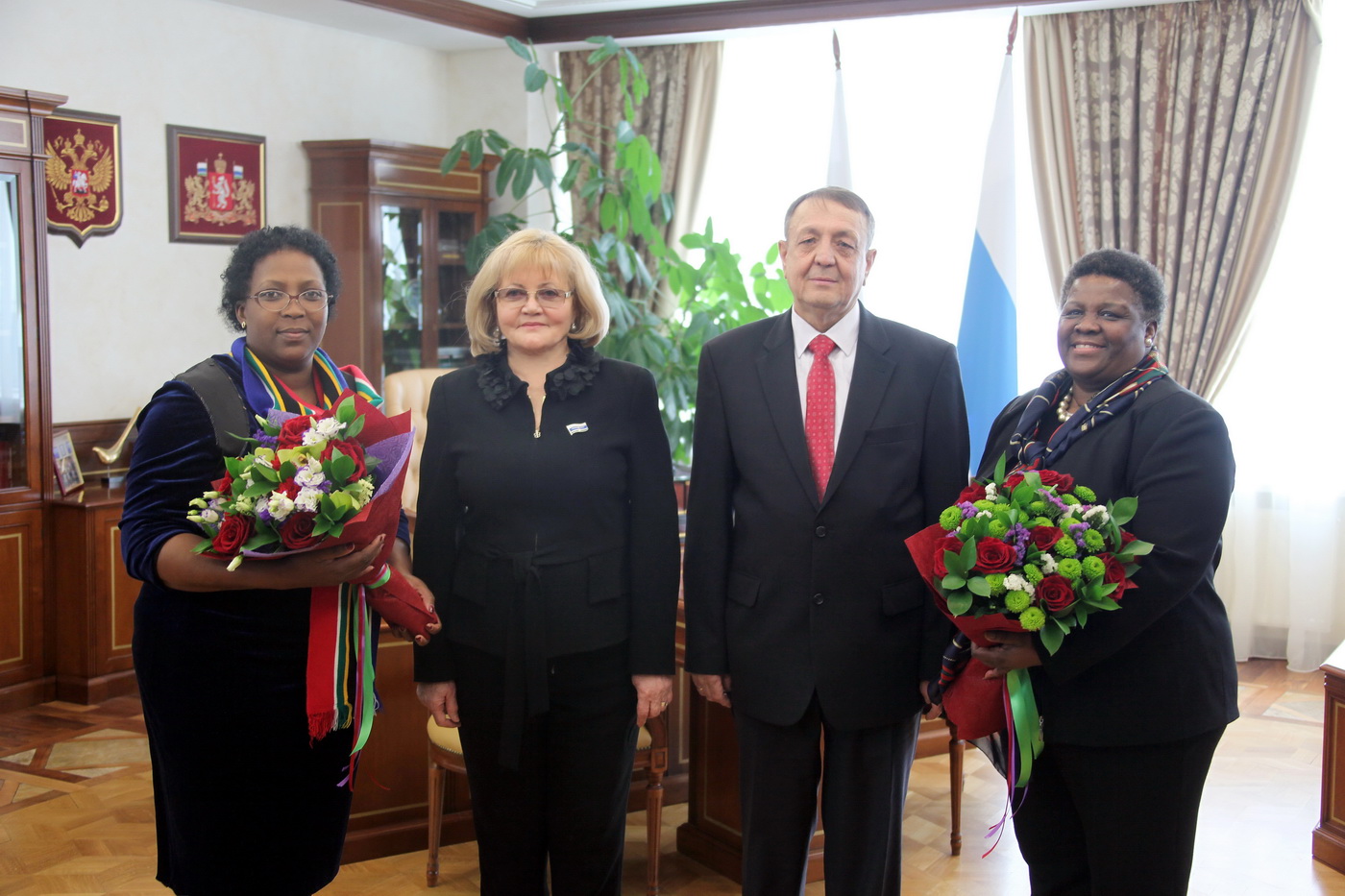 Председатель свердловского парламента отметила, что Чрезвычайный полномочный посол ЮАР в РФ Номасонто Сибанда-Туси принимала участие во втором Евразийском женском форуме, который проводился по инициативе Председателя Совета Федерации РФ Валентины Матвиенко. Обсуждение в таком формате вопросов женского предпринимательства, увеличения продолжительности жизни граждан, женской занятости в различных сферах дает большой эффект. По итогам встречи стороны договорились о дальнейшем сотрудничестве в развитии женского предпринимательства.