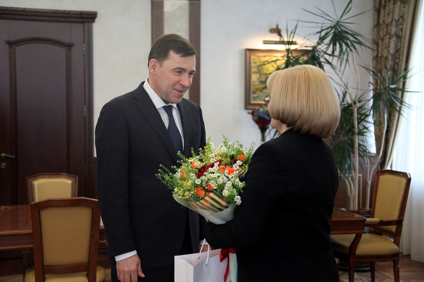 Прежде чем обсудить рабочие вопросы, губернатор поздравил Людмилу Бабушкину с Международным женским днём 8 Марта, пожелал успехов на очень нелегком, важном поприще - председателя Законодательного Собрания.