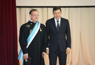 В торжественной обстановке Евгений Куйвашев наградил Александра Дементьева званием «Почетный гражданин Свердловской области».
