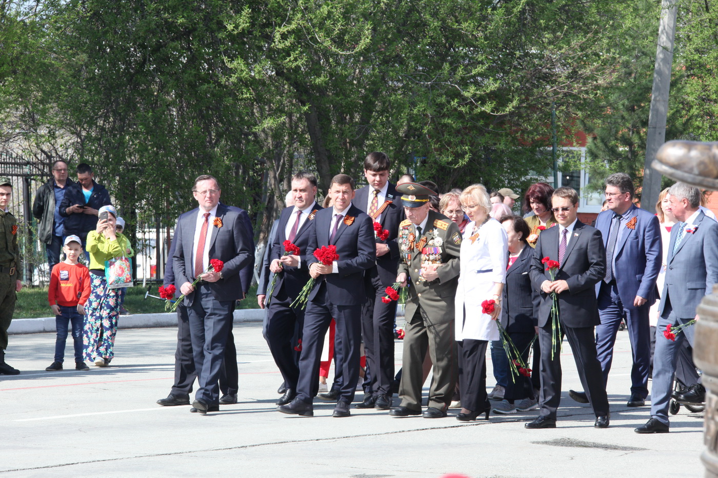 Руководители органов власти Свердловской области во главе с губернатором Евгением Куйвашевым возложили цветы к памятнику военным медикам. К ветеранам, проходящим лечение в госпитале, со словами поздравлений с 74-й годовщиной Победы в Великой Отечественной войне обратились губернатор Евгений Куйвашев и председатель Законодательного Собрания Людмила Бабушкина.
