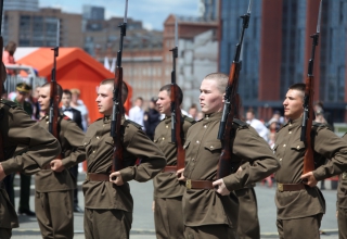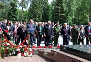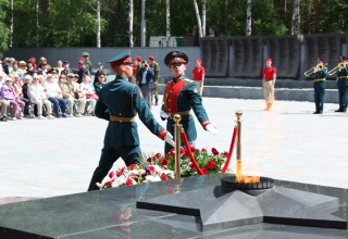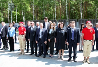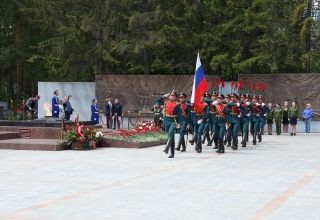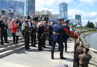 Председатель Законодательного Собрания Людмила Бабушкина, депутаты вместе с членами правительства, руководителями администрации и депутатами Думы Екатеринбурга, командованием Центрального военного округа, ветеранами, представителями дипломатического корпуса и конфессий, суворовцами и кадетами возложили цветы к Вечному огню на Широкореченском мемориальном комплексе.