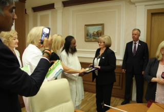 Сегодня председатель Законодательного Собрания Людмила Бабушкина встретилась с духовным и общественным лидером республики Индия Рави Шанкаром.