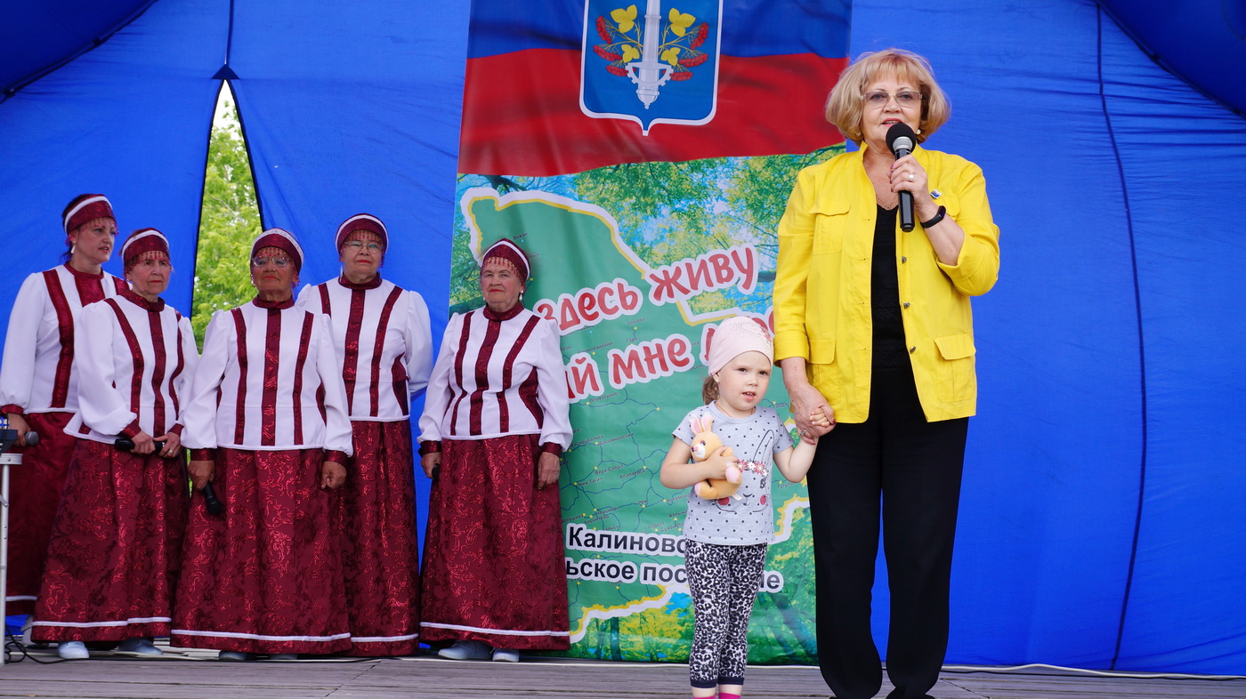В селе создаются новые семьи: только в 2019 году в Калиновском сыграли три свадьбы. Рождаются и растут дети. На сцену для поздравления с 345-летием села вместе с Людмилой Бабушкиной вышла юная местная жительница Елизавета Абрамовских.