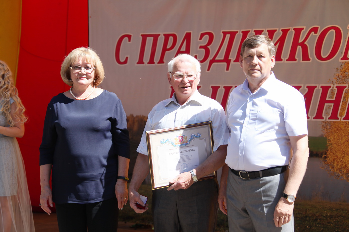 Председатель парламента вручила Почетные грамоты Законодательного Собрания лучшим работникам Пышмы, представляющим предприятия ЖКХ, социальную сферу и малый бизнес. Вместе с главой города Виктором Соколовым Людмила Бабушкина, являющаяся Почетным гражданином Пышминского городского округа, вручила звания и ленты новым Почетным гражданам – М.А. Кипрушкиной и Н.Д. Коновалову.