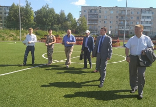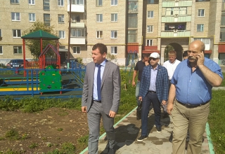 Далее члены комиссии осмотрели комплексное благоустройство дворов Североуральска. Дворовая территория на ул. Ленина, 43 была благоустроена в прошлом году. На данный момент двор находится в отличном состоянии. Администрация планирует реконструировать имеющееся здесь поле для мини-футбола.