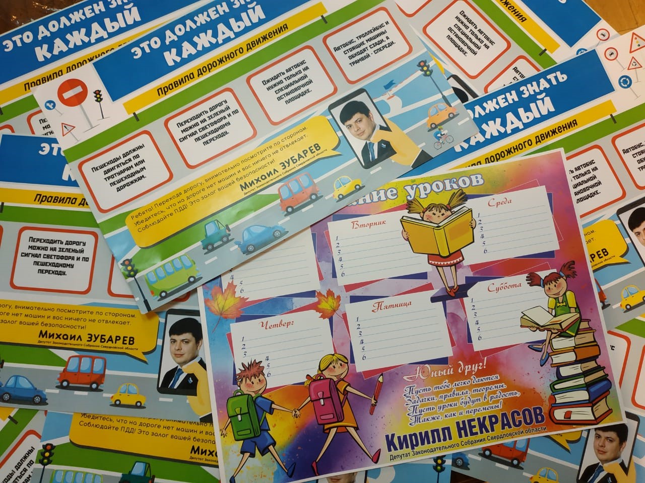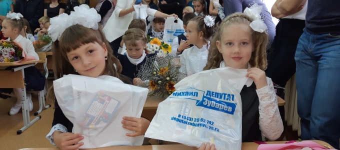 Депутаты Законодательного Собрания Михаил Зубарев и Кирилл Некрасов подготовили для первоклассников особенные сюрпризы: расписание занятий и памятки ПДД.