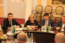 10 сентября в первый день рабочего визита делегации Свердловской области в Азербайджан состоялась встреча с Чрезвычайным и Полномочным Послом Российской Федерации в республике Михаилом Бочарниковым. Губернатор Свердловской области Евгений Куйвашев возглавляет делегацию региона, в составе которой председатель Законодательного Собрания Людмила Бабушкина, депутаты Сергей Никонов, Вячеслав Вегнер, Михаил Зубарев, уполномоченный по правам человека Татьяна Мерзлякова, члены правительства, ректоры ведущих уральских вузов, предприниматели.