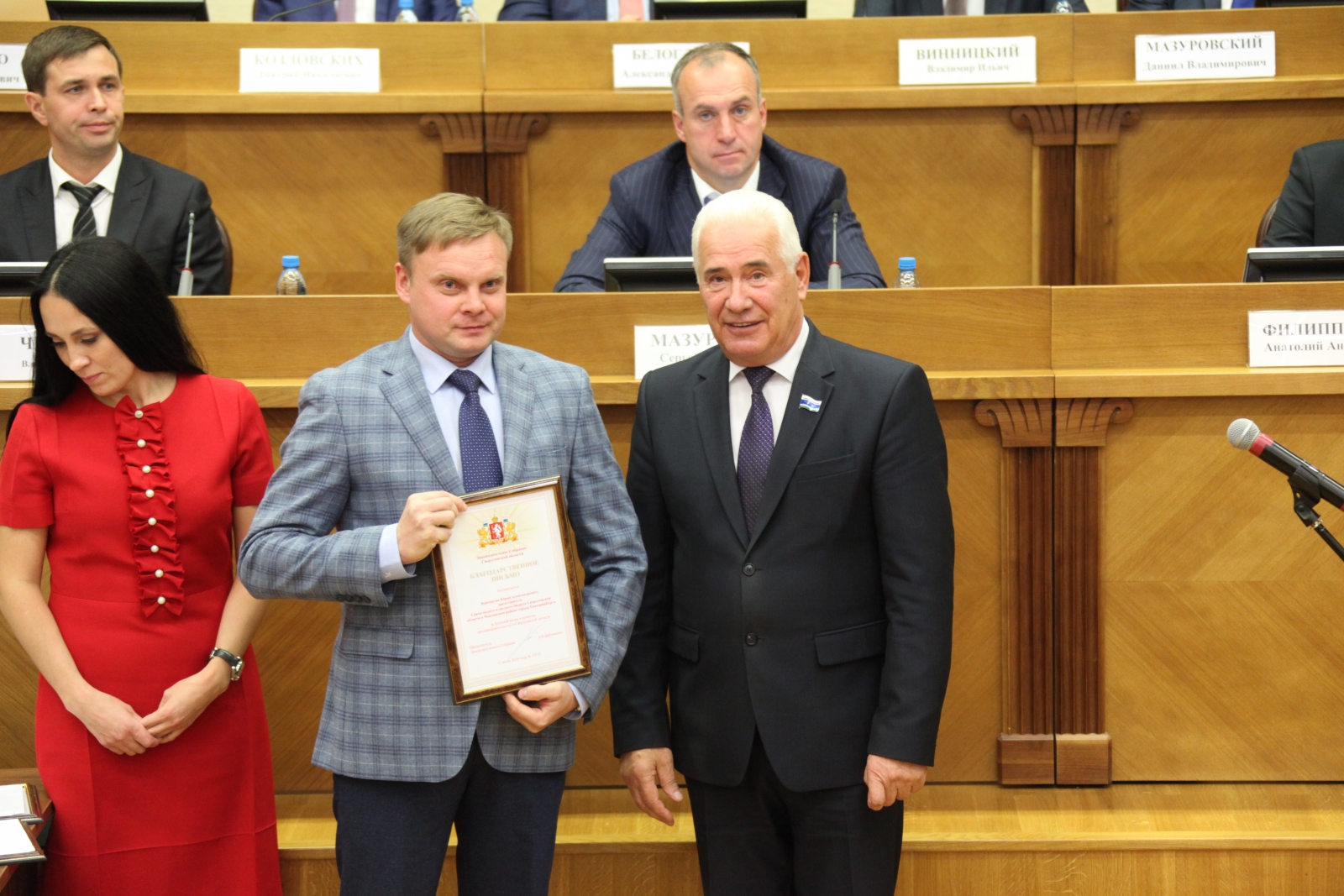 По поручению председателя регионального парламента Людмилы Бабушкиной, он вручил ряду членов Союза малого и среднего бизнеса Благодарственные письма Законодательного Собрания Свердловской области.