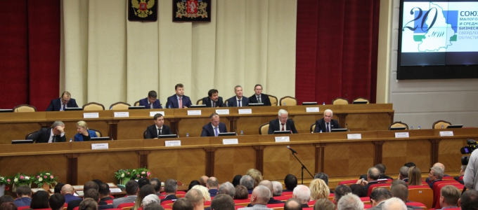 Заместитель председателя Законодательного Собрания Виктор Якимов принял участие в торжественном мероприятии, посвященном 20-летию со дня основания Союза малого и среднего бизнеса Свердловской области.