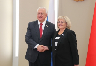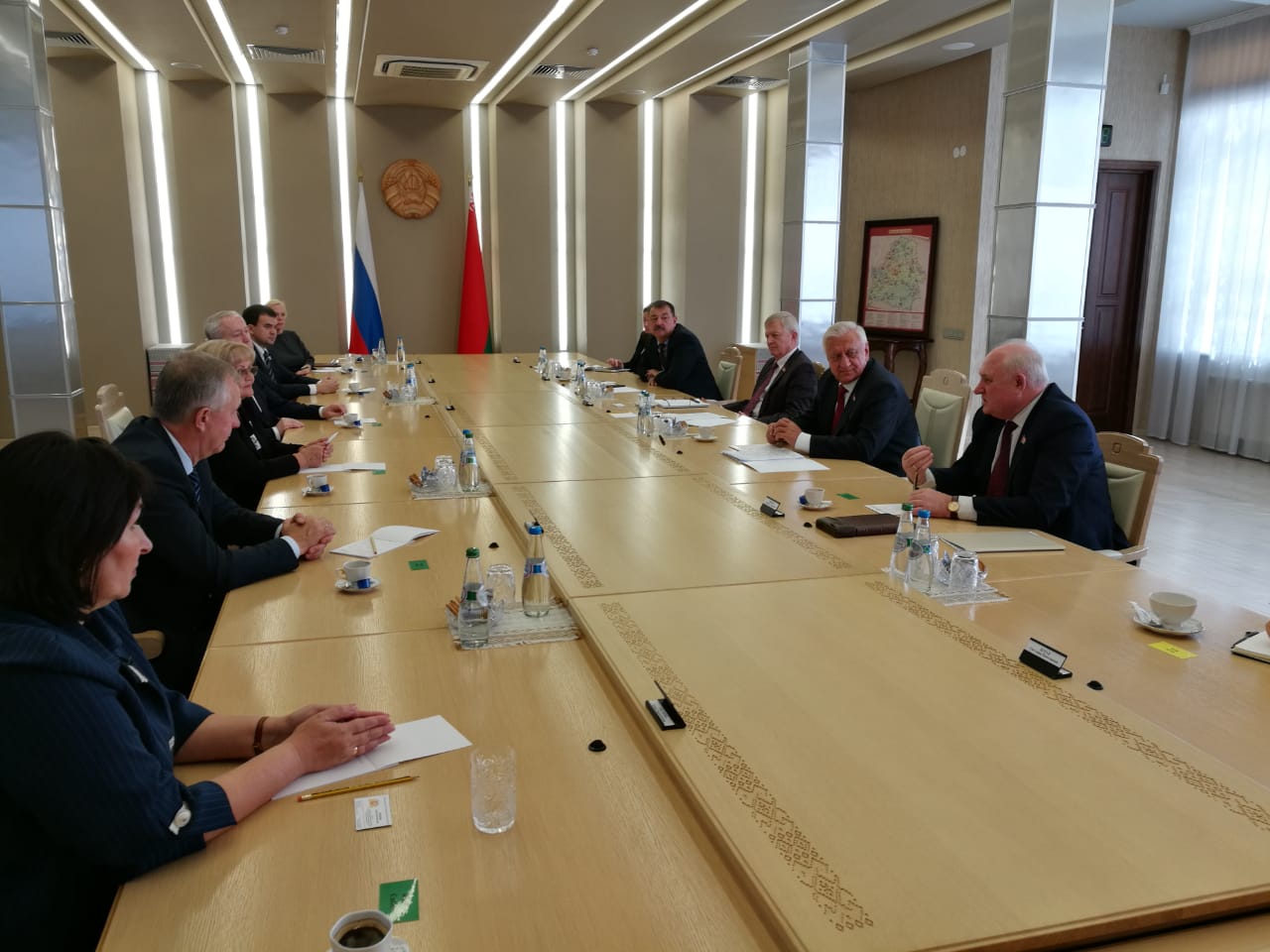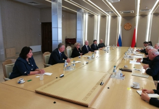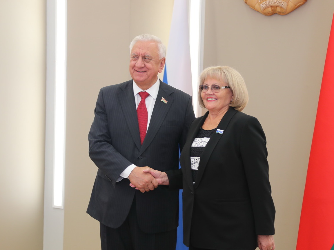 Председатель Законодательного Собрания Людмила Бабушкина и депутаты Игорь Аксенов, Михаил Ершов, Вячеслав Погудин, Елена Трескова встретились с Председателем Совета Республики Национального собрания Беларуси Михаилом Мясниковичем.