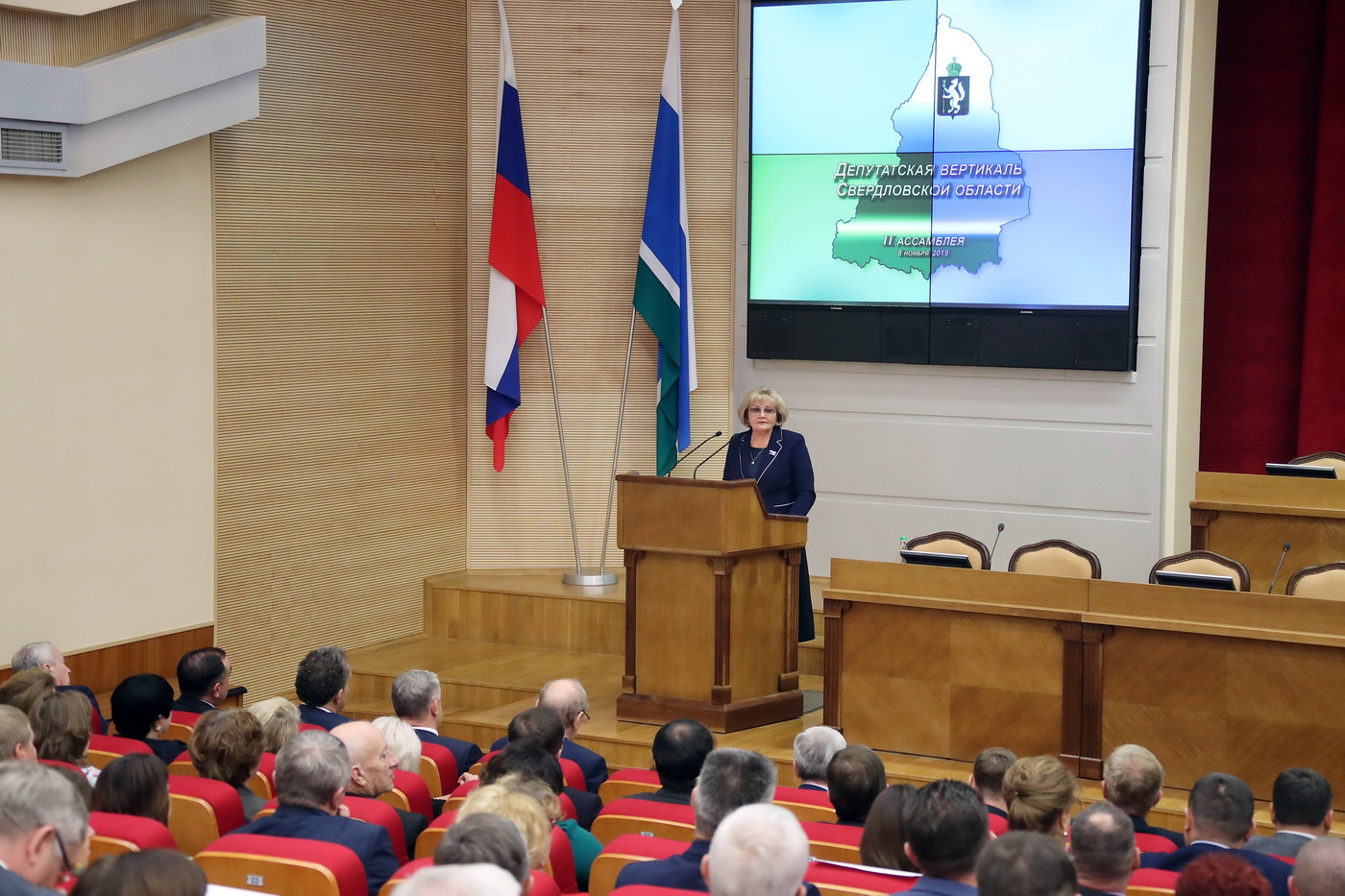 В Екатеринбурге состоялось второе заседание Ассамблеи Свердловского регионального объединения «Депутатская вертикаль». На нем выступили с докладами губернатор Евгений Куйвашев, председатель Законодательного Собрания Свердловской области Людмила Бабушкина, председатель комитета Госдумы по государственному строительству и законодательству Павел Крашенинников, первый вице-спикер регионального парламента Виктор Шептий и депутаты представительных органов муниципальных образований (Екатеринбурга, Ревды, Каменска-Уральского, Нижнего Тагила).