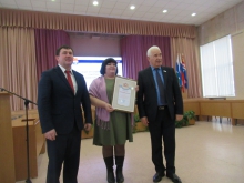 Выполняя почетную и ответственную миссию, Виктор Якимов вручил руководителю Каменск-Уральского городского архива Почетный Диплом Законодательного собрания Свердловской области.