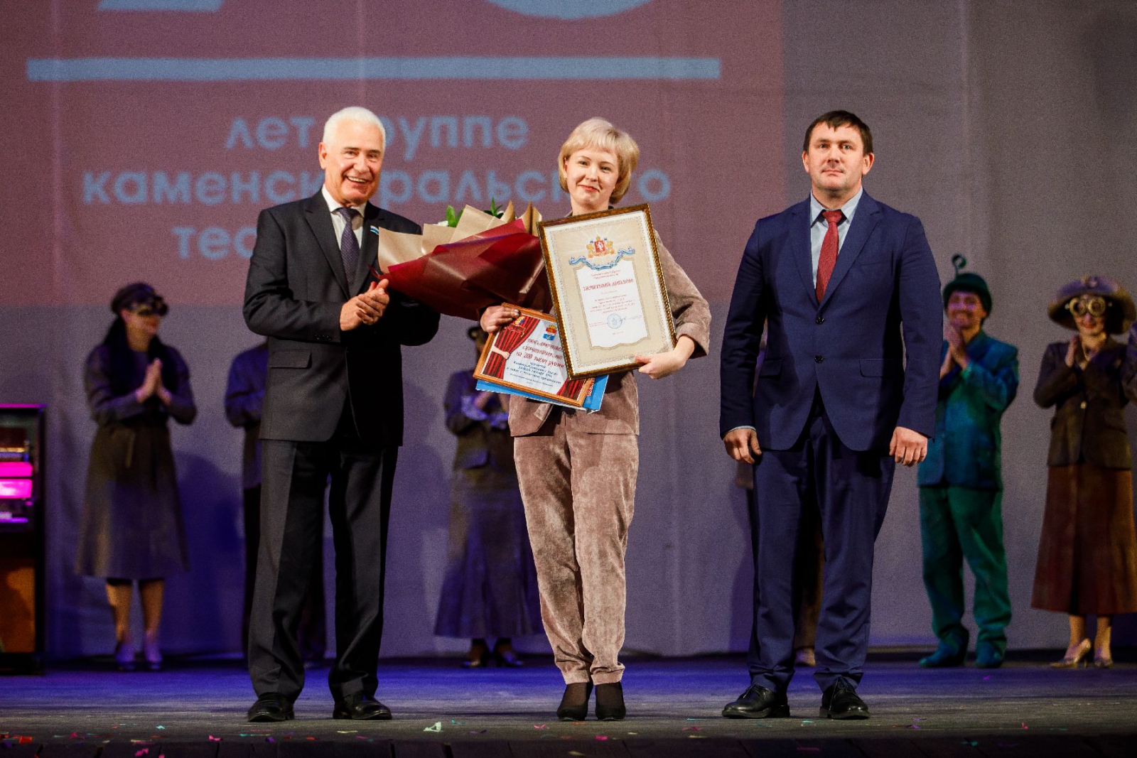 Почетную грамоту губернатора области получил Владимир Скрябин, артист и руководитель отдела по связям с общественностью. Почетной грамотой за многолетний добросовестный труд, преданное служение театральному искусству и профессиональное мастерство отмечен Равкат Касимов, заведующий художественно-постановочной частью. Благодарственным письмом Заксобрания за большой вклад в развитие культуры в городе награждены заместитель директора по развитию и организации зрителя Елена Гусарева и артисты театра Елена Плакхина, Инга Матис, Алена Федотова, Татьяна Петракова.