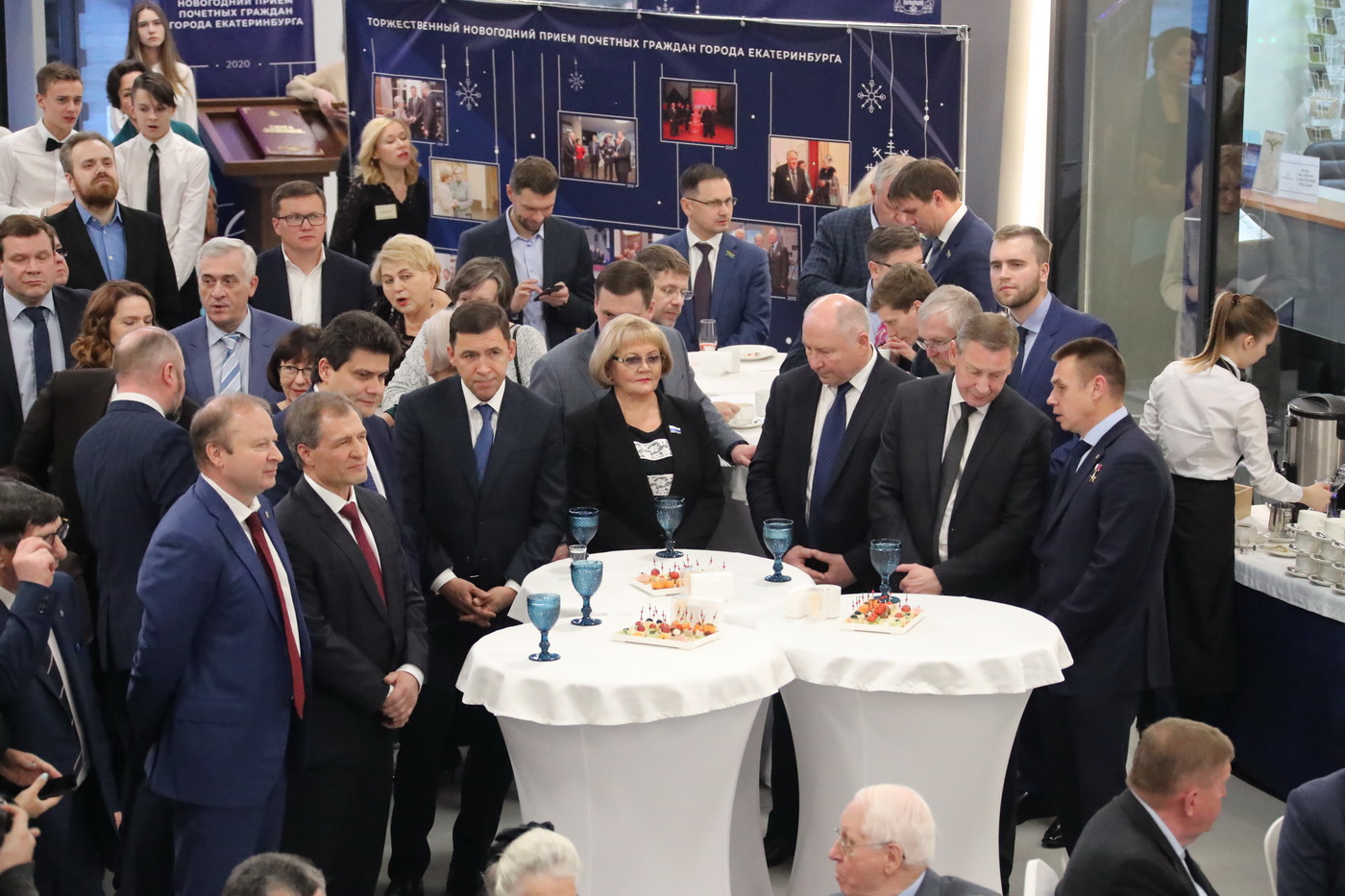В мультимедийном историческом парке «Россия – моя история» собрались жители Eкатеринбурга, удостоенные звания почетного гражданина города, депутаты, руководители предприятий, представители исполнительной власти.