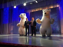 Новогоднее представление было организованно коллективном ДК города Алапаевска. Поздравить детей приехали гости из Екатеринбурга с яркими шоу: "Человеком-пружиной" и символом Нового года белыми медведями. Дети стали не только зрителями, но и участниками праздничного театрализованного представления. Вместе со сказочными героями дети танцевали, играли в подвижные игры, водили хороводы, зажигали огоньки на елочке и конечно, помогали Деду Морозу со Снегурочкой победить злых персонажей сказок.