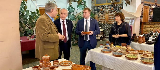 Председатель комитета Законодательного Собрания по социальной политике Вячеслав Погудин совместно с депутатом Законодательного Собрания Александром Коркиным и членами художественного экспертного совета Свердловской области посетили предприятие в Нижних Таволгах Невьянского городского округа, занимающееся сохранением и развитием народных художественных промыслов, ООО «Таволожская керамика».