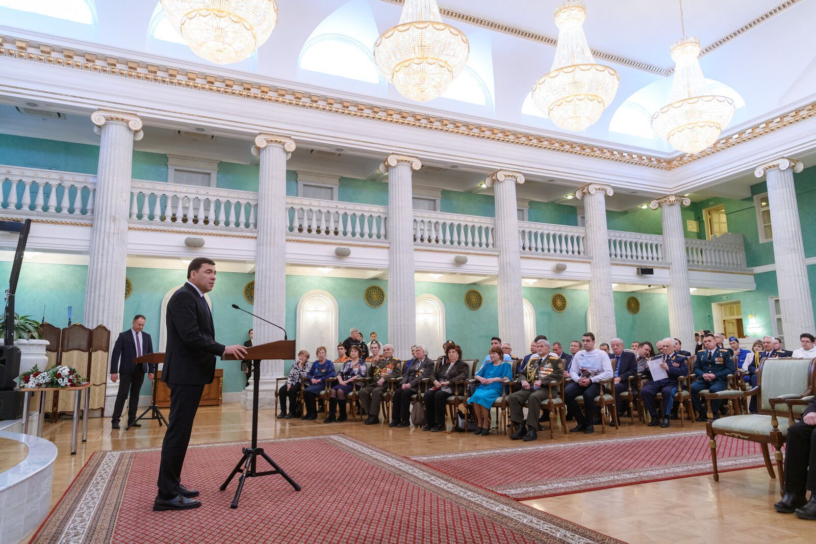 «Президент Владимир Владимирович Путин объявил 2020 год в России Годом памяти и славы. Мы в Свердловской области сделаем все необходимое для того, чтобы провести юбилейные мероприятия на самом высоком уровне, поддержать наших дорогих ветеранов, помочь им решить все житейские вопросы, улучшить условия жизни, сохранить и укрепить в обществе историческую память о героических подвигах и великом самопожертвовании советского народа. Дорогие ветераны, низкий поклон вам за мужество и героизм, за огромный запас жизненной стойкости, который позволил преодолеть все тяготы войны, который вы сохраняете по сей день. За великий пример силы духа, ответственности за судьбу страны, который вы даете всем нам. Здоровья вам, счастья, благополучия, внимания, любви и заботы близких вам людей, мирного неба над головой!», – сказал Евгений Куйвашев.