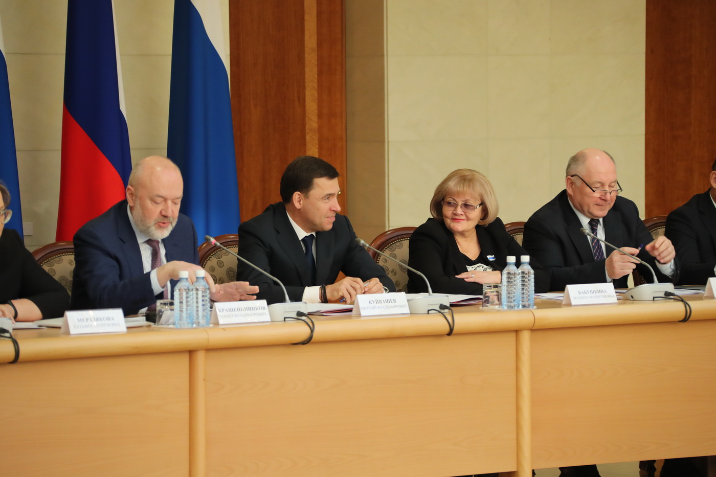 Председатель Законодательного Собрания Свердловской области Людмила Бабушкина и ее заместители Михаил Клименко, Виктор Маслаков и Виктор Якимов приняли участие в работе экспертного круглого стола, на котором обсуждалось внесение изменения в Конституцию Российской Федерации.