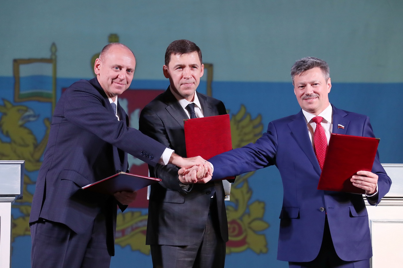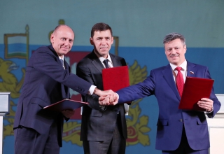 В рамках торжественного собрания состоялось подписание дополнительного соглашения к областному трехстороннему соглашению по регулированию социально-трудовых отношений. Допсоглашение предполагает новый пункт в разделе «Заработная плата, доходы и уровень жизни населения», предусматривающий доведение в течение трех лет средней зарплаты по Свердловской области до уровня среднероссийской. Свои подписи под этим документом поставили Евгений Куйвашев, Андрей Ветлужских и Дмитрий Пумпянский.