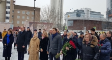 Председатель Законодательного Собрания Людмила Бабушкина вместе с Наиной Ельциной, дочерьми первого Президента России Татьяной Юмашевой и Еленой Окуловой, полномочным представителем Президента России в УрФО Николаем Цукановым и губернатором региона Евгением Куйвашевым возложила цветы к памятнику Борису Ельцину.