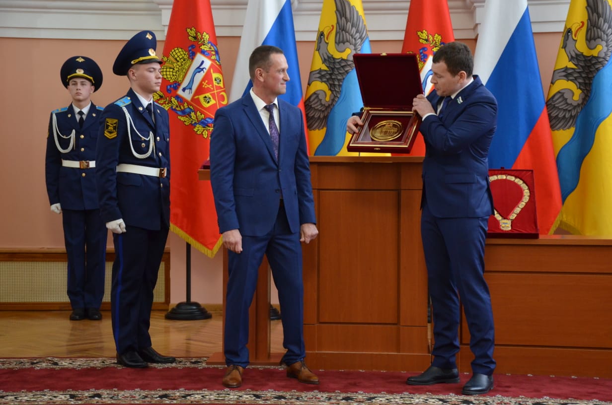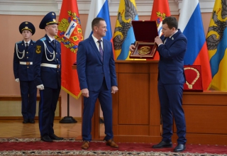 Дмитрий Жуков вручил новому главе Оренбурга эстамп с гравюрным изображением Свердловской области и знак отличия Свердловской области «За заслуги перед Свердловской областью» III-й степени.